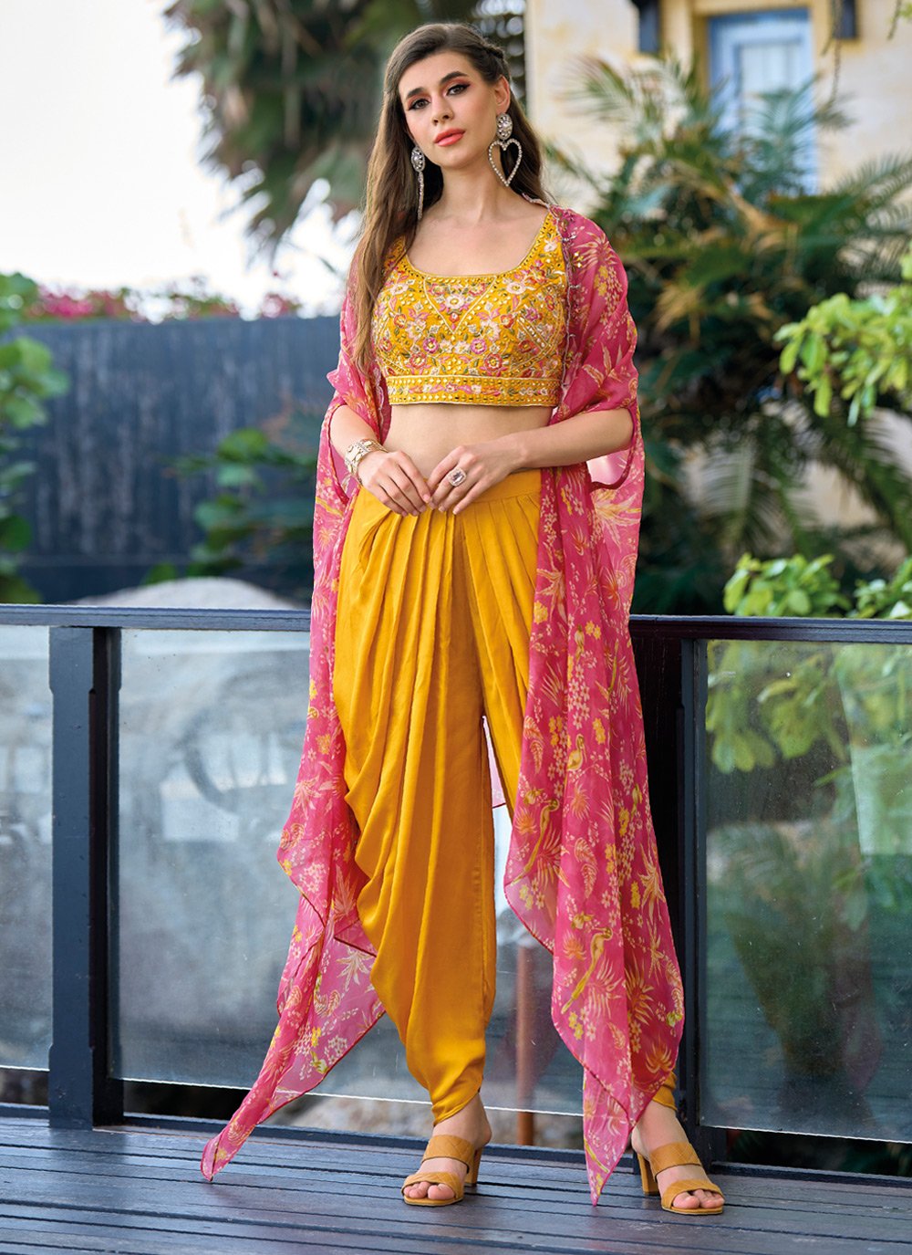 Dhoti-Cape Combo: Layer a tailored cape over dhoti pants and a tank for effortless cocktail appeal.