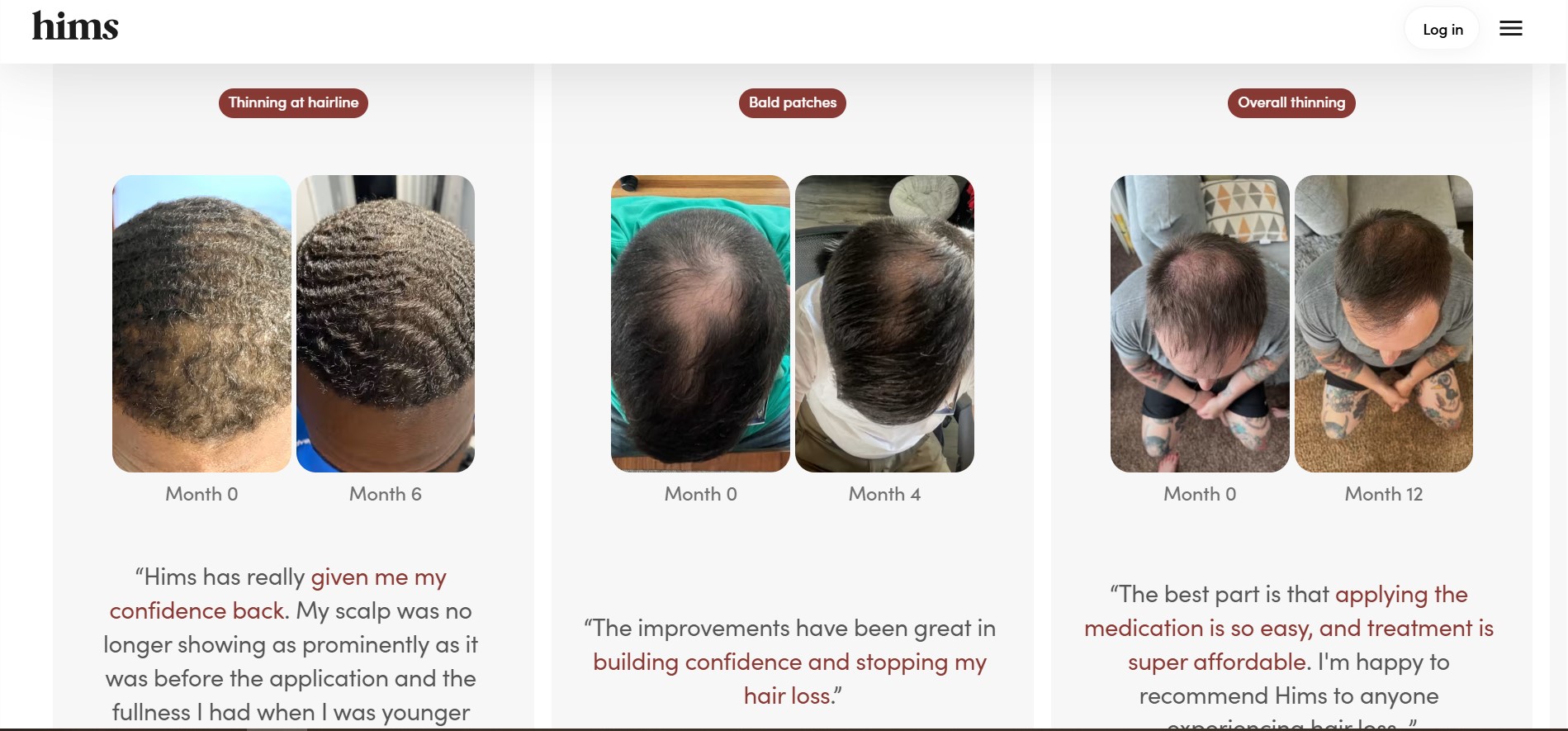 Hims appeals to men seeking discreet, doctor-backed treatments without visiting a clinic. The brand promises convenience, privacy, and visible results for confidence-related issues. Expectations centered around quality service, transparency, and affordability of ED and hair loss drugs.