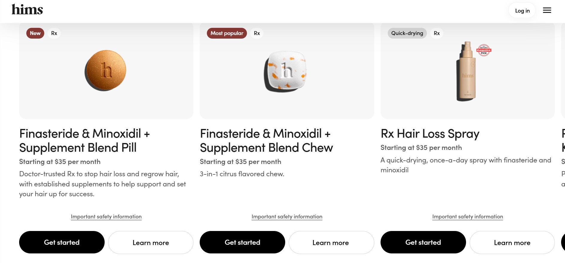 Hims is a telemedicine brand offering FDA-approved and cosmetic health products for men. Founded in 2017, it focuses on issues such as erectile dysfunction (ED), hair loss, mental health, and general wellness through online consultations and discreet shipping.