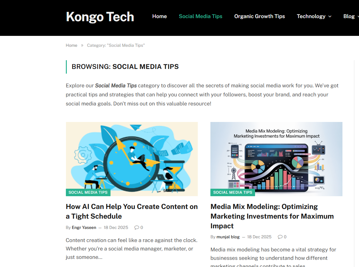 “Kongotech” usually refers to Kongo Tech, a blog-style website that publishes a mix of social-media growth tips and general web content across many unrelated categories. On its own “About Us” section, it describes itself as a place to find “tips and tricks to grow fast on social media” plus information on technology, finance, gaming, entertainment, lifestyle, health, and fitness and it also invites people to write for the site.