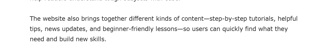 ● Tech and digital skills: step‑by‑step tutorials on apps, browser tricks, security practices, AI tools, and general “how to use tech better” content.