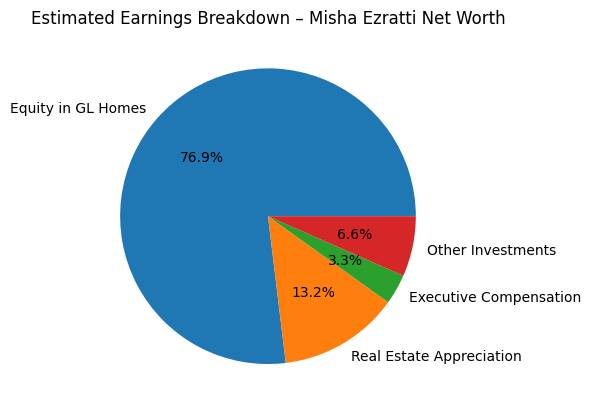 Misha Ezratti’s primary earnings come from the real estate industry, especially his role at GL Homes. Below is a simplified overview of his major revenue streams as understood in industry estimates.