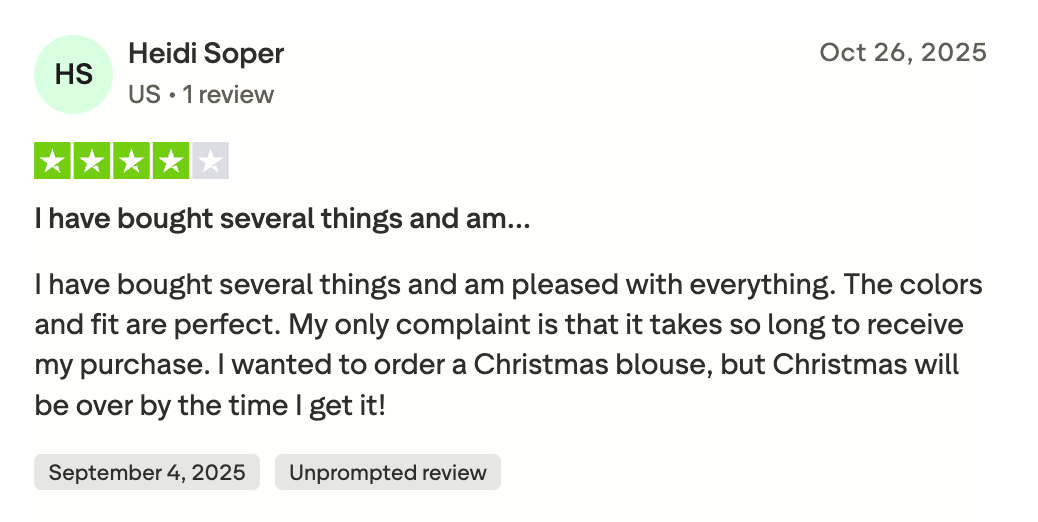 A consistent pattern appears across reviews. Customers who expect fast fashion with patience built in are more satisfied. Customers who expect fast fashion with instant fulfillment often are not.