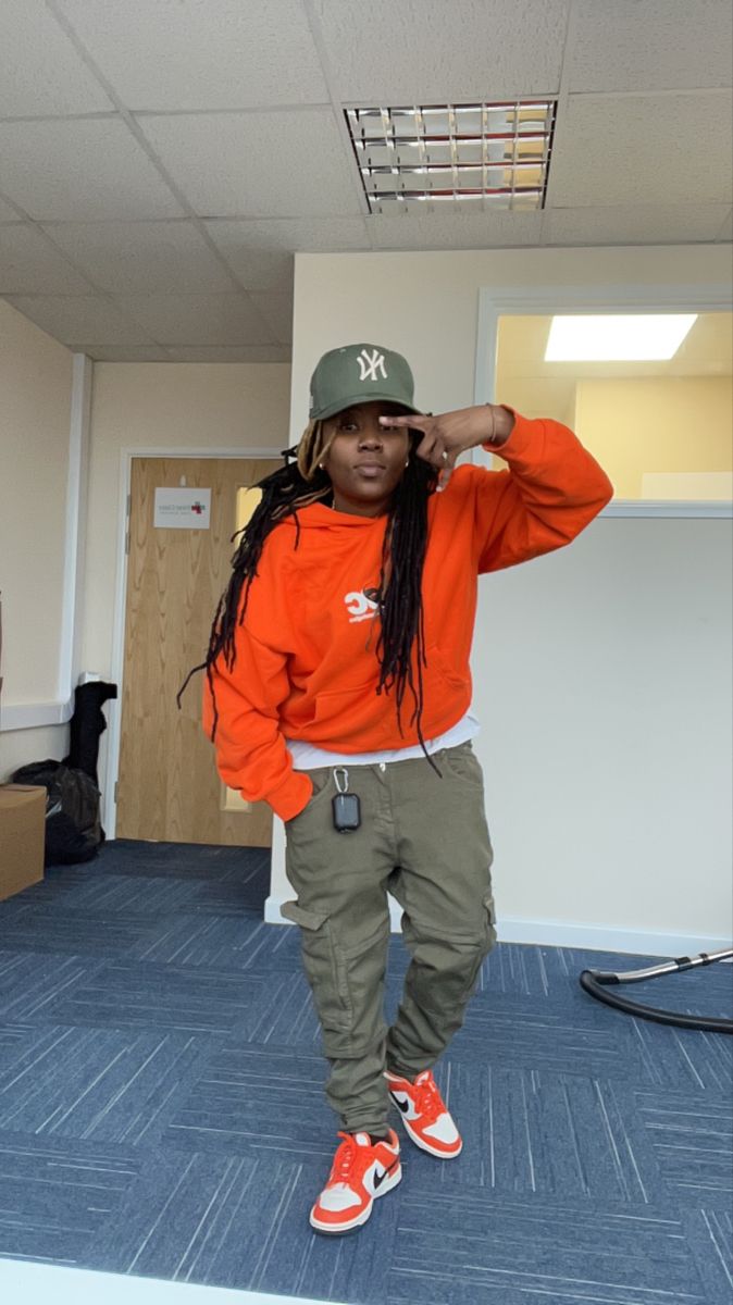 Burnt Orange Sweater: Energize your look with orange, layered over an olive pant and ankle boots. Trendy, eye-catching combo for chilly evenings.
