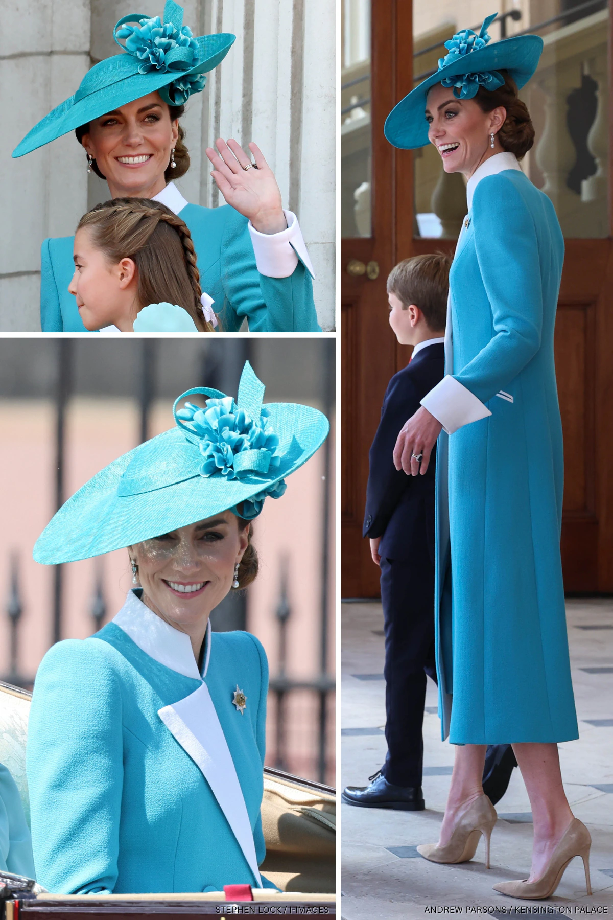 A single, saturated shade—like aquamarine worn head‑to‑toe feels instantly polished for balcony moments and parades. Rewear it by changing the hat shape, clutch texture, or even the lip color so the photos tell a slightly different story each time.