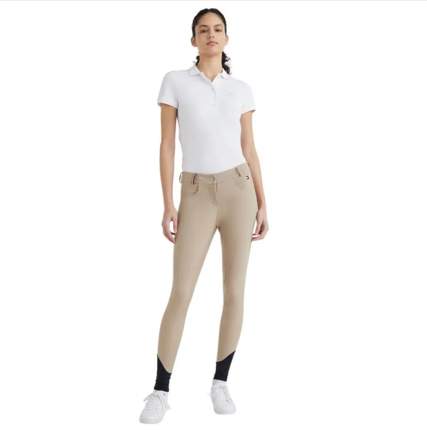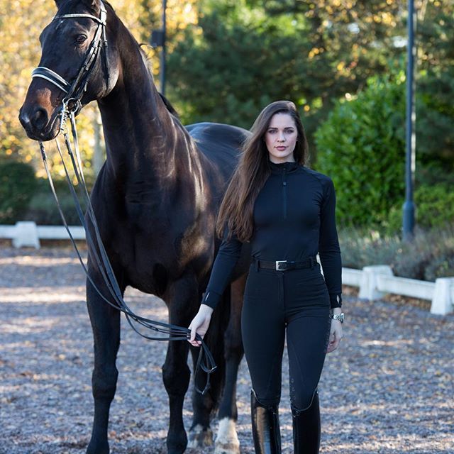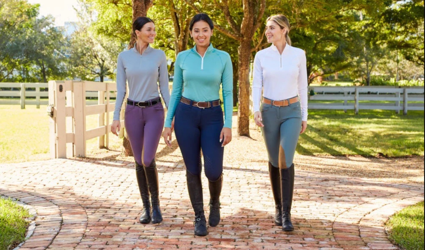 Timeless, clean, and perfect for lessons or hacking. Tuck in a technical white polo and pair with high-waisted beige breeches and black paddock boots. Add a tailored blazer for cooler days.