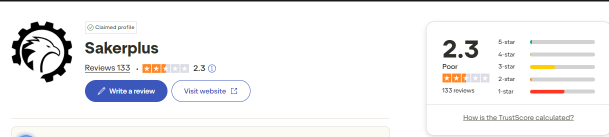 One of the first things you notice on Trustpilot is that Sakerplus’s reputation is not uniform across regions. The main sakerplus.com domain and the UK‑branded sakerplus.co.uk domain show noticeably different tone in their summaries.