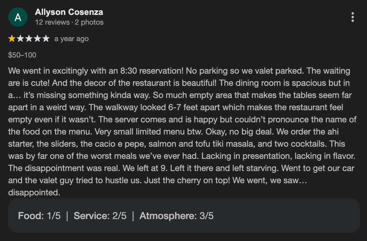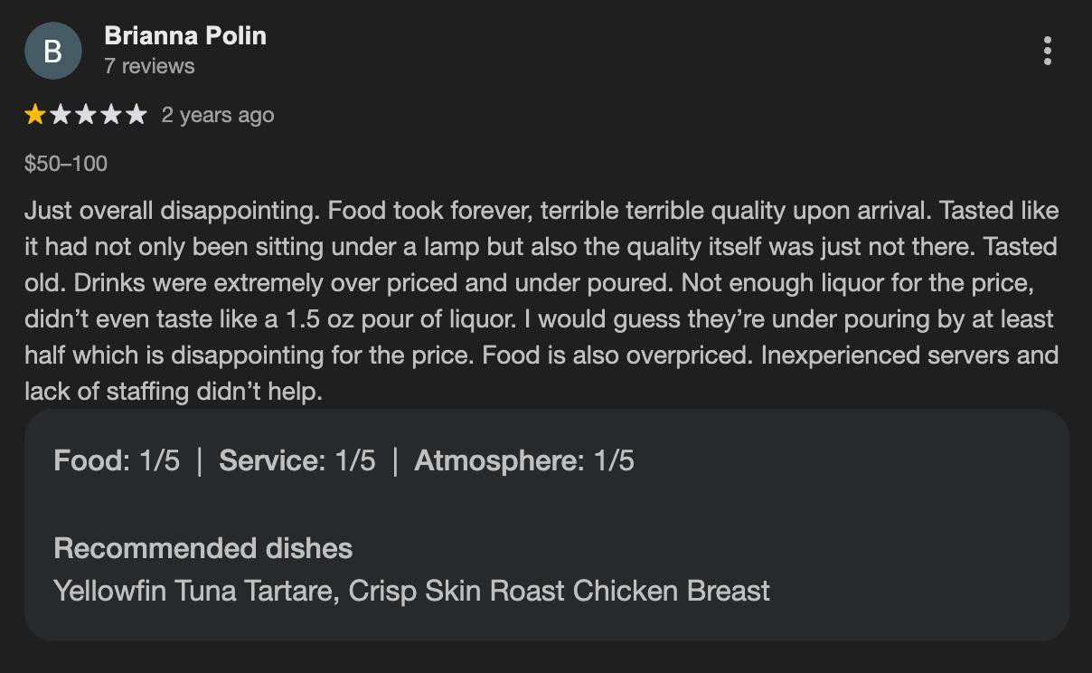 The reviews tell a clear story. When hype carries a venue further than fundamentals, customer patience eventually runs out.