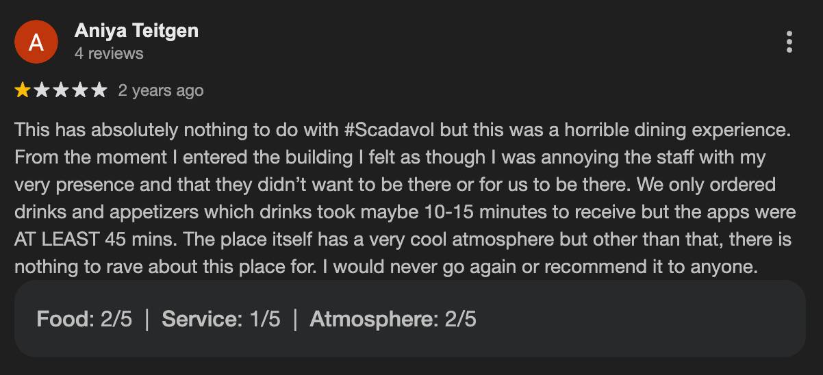 However, many of the harshest reviews specifically state the scandal had nothing to do with their experience. These guests focus on temperature, wait times, taste, and value.