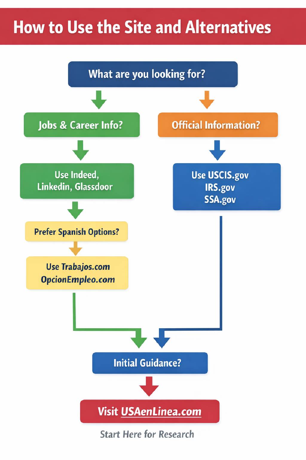 | USAenLinea.com | Informational guide and job aggregator (Spanish-focused) | Safety score ~65/100; considered “reasonably safe” but limited visibility; minimal independent reviews | Good for initial tips and guidance; not official |