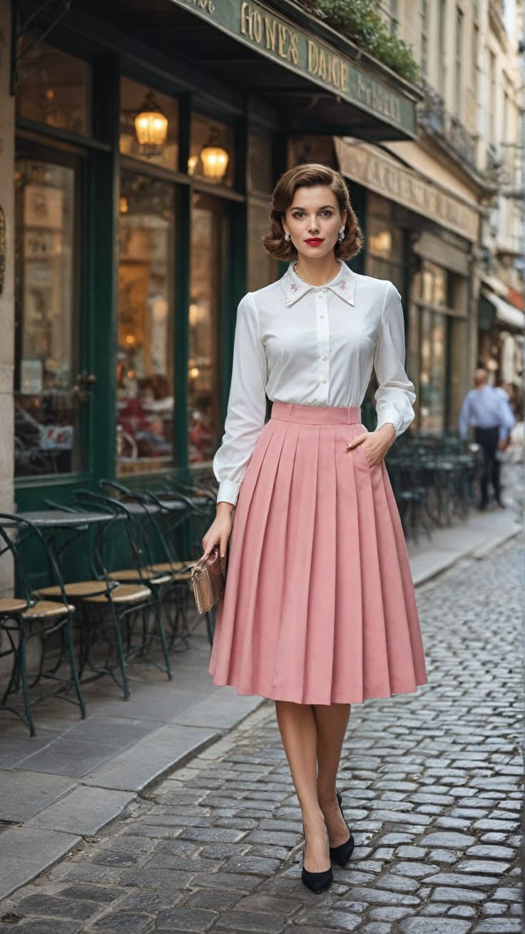 Choose a pleated or embroidered midi skirt and tuck in an elegant fitted knit or silky blouse. Complete with slim-strap heels and a metallic mini bag.